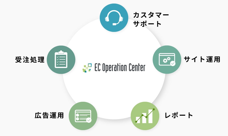 - EC関連業務のお悩みにお応えするECオペレーションセンターの支援サービスです。以下の4つの項目で、EC事業運営に必要なマーケティングからシステム構築・運用に至るまで、EC領域全体のサポートをいたします。