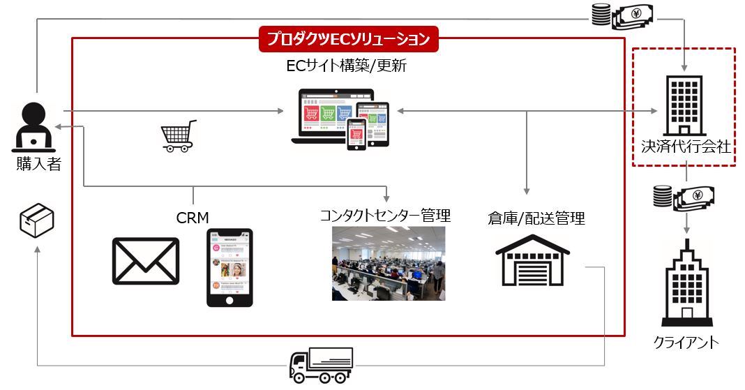 ECカートシステムの選定、デザイン、サイト構築、フルフィルメント(コンタクトセンター、倉庫、物流)、サイト運用など、ECサイトの構築・運用に必要なすべてをご提供可能です。また、一部の作業のみアウトソースしたいなど、領域別の対応も可能です。