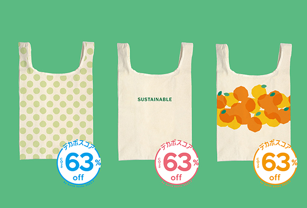 エコバッグやマルシェバッグなどの各種バッグ類や、タオル類など、デカボスコア付き製品をすぐに導入いただける各種ラインナップをご用意しております。