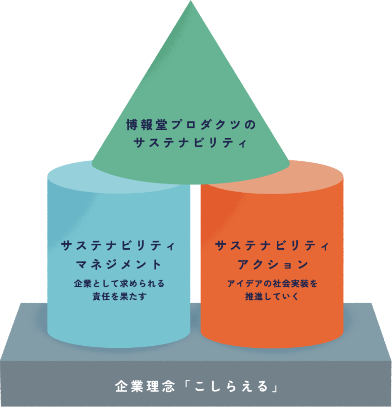 - 総合制作事業会社としての強みや資産を活かしながら、社員一人ひとりが日々の仕事を通して「こしらえる力」を主体的に発揮することにより、サステナブルなアイデアの社会実装に向けたビジネスや活動を推進していきます。