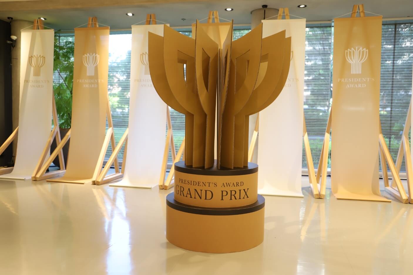 グランプリに授与されるトロフィーは、社名「PRODUCT'S」の“P”をモチーフに、事業力の結集を象徴する形状で一から設計された。グランプリ名が記載され、毎年受け継がれるものになっていて、社長賞の象徴として位置づけられている。トロフィーをモチーフとしてロゴのリニューアルし、キービジュアル、会場装飾、映像演出、記念品まで、社長賞の世界観を統一されるようになっている。