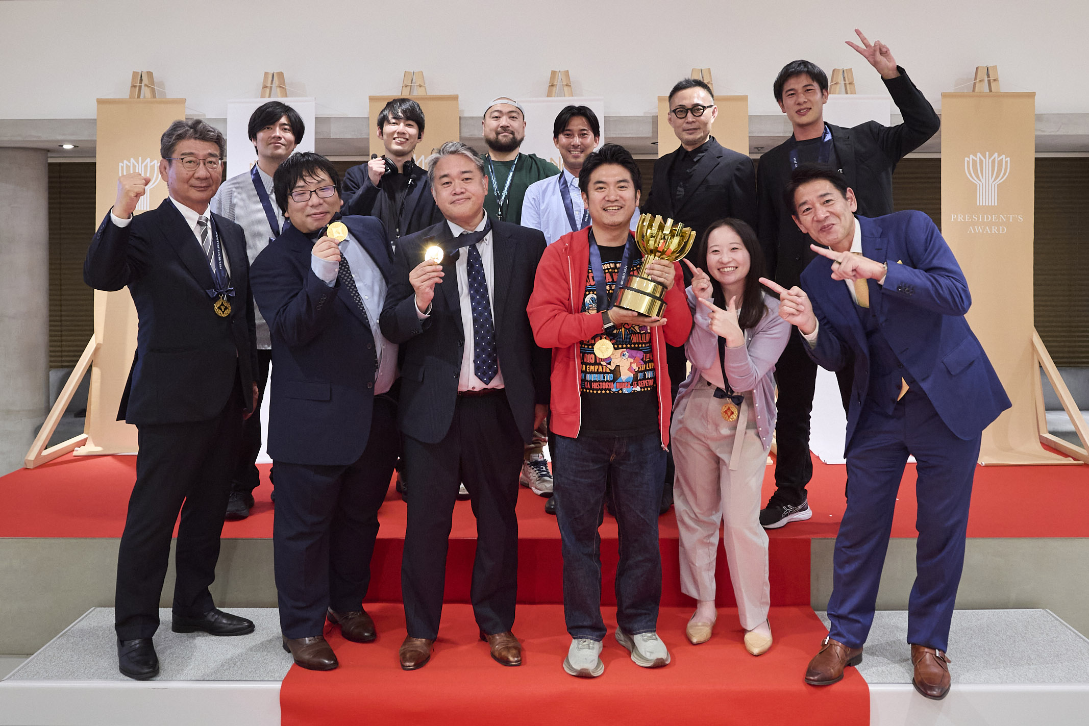 授賞式には社長賞の受賞者が参加し、式典内でグランプリが発表される構成のため、発表の瞬間まで期待感が続き、参加者の関心とモチベーションを高めている。