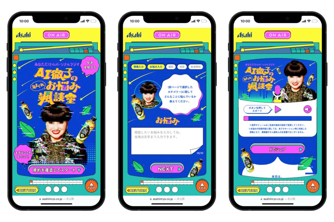 「あなただけのパーソナルラジオ AI徹子の気まぐれお悩み颯談室」は、『アサヒ颯』のスッキリとした飲み心地を、悩みが解決した時のスッキリさに例えて訴求するWebコンテンツ。